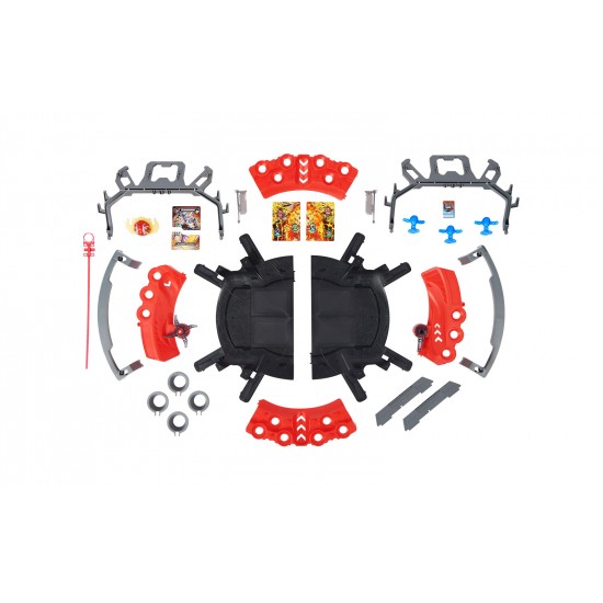 Include: 1 Arena Deluxe, 1 Bakugan pentru atac special, 2 steaguri de clan, 3 totemuri de lupta, 1 cartonas-personaj, 1 cartonas atac special, 2 cartonase poarta, 1 cordon de lansare XL si 1 jeton Bakugan.