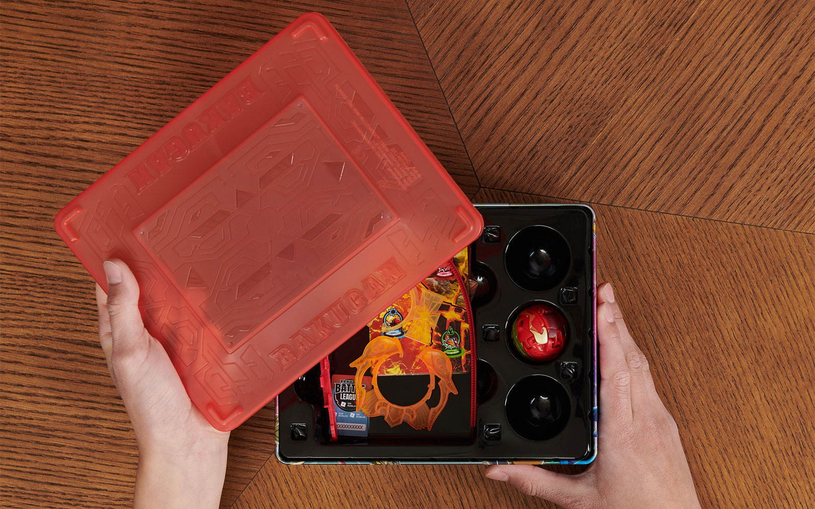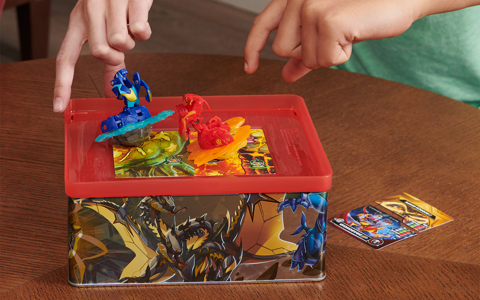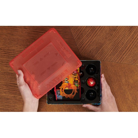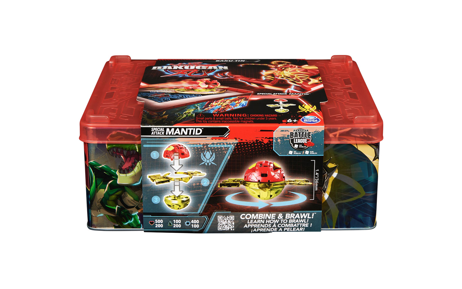 Inmulteste-ti colectia Bakugan si lupta oriunde cu stil cu Baku-tin. Aceasta carcasa premium Bakugan prezinta o ilustratie minunata Bakugan si vine cu un Special Attack Mantid Bakugan. Acest set include, de asemenea, carti de tranzactionare precum un personaj. Deschideti Bakutin-ul pentru doua straturi de stocare si inele Special Attack pentru un acces usor, perfect pentru mers. Scoateti si rasturnati capacul pentru a va crea propriul spatiu de lupta. Fiecare figura de actiune Bakugan include un cod special de utilizat in jocul online, Roblox, pentru noi moduri de a juca si de a interactiona.