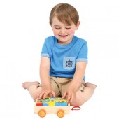 Mini-caruciorul din lemn are snurulet pentru tras, iar in interior se vor depozita toate piesele de construit din lemn.
