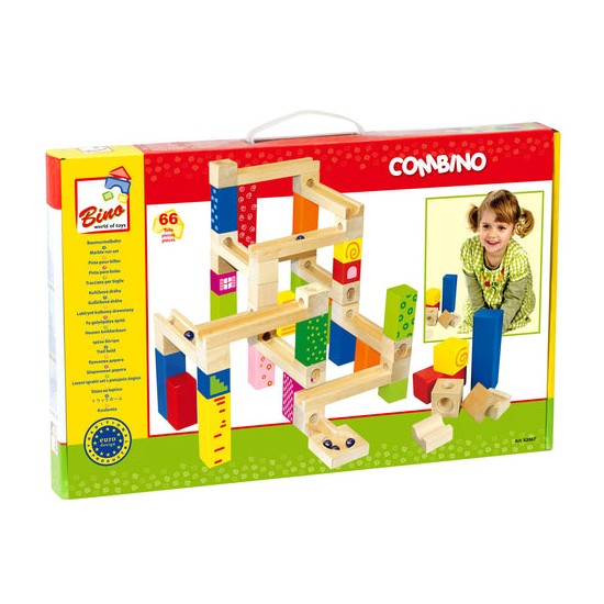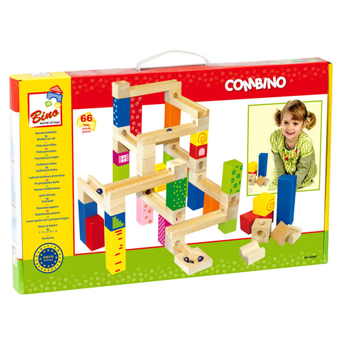 Set de construit din lemn Labirint, Marble Run, 66 piese
