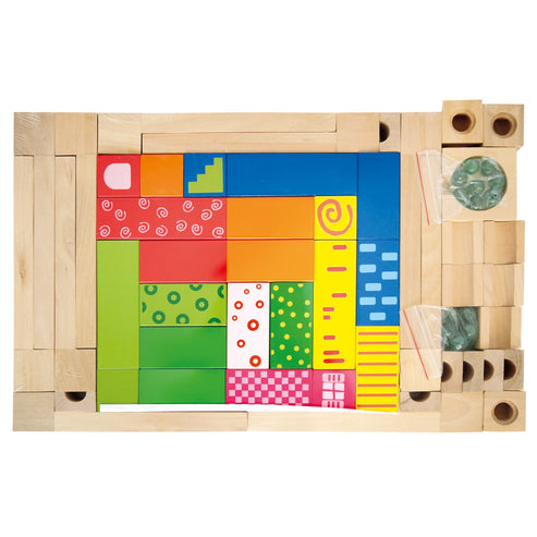 Marbles Run - Circuit cu bile integral din lemn, cu multiple componente individuale ce se pot reaseza in trasee diferite.