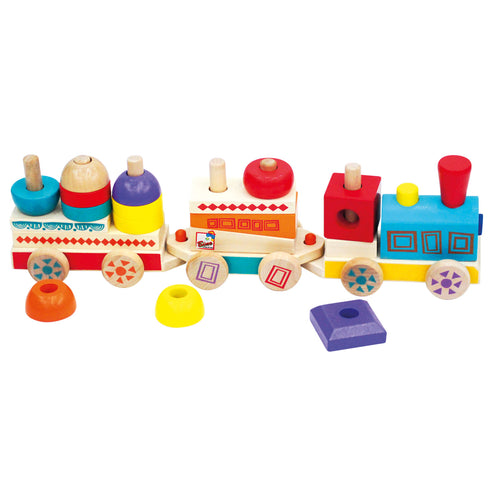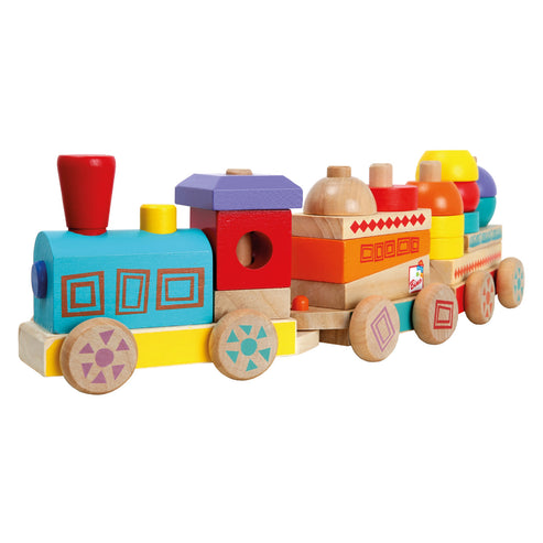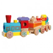 Tren din lemn multicolor cu vagoane, Maxi, 21 piese