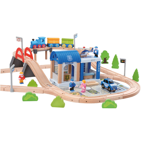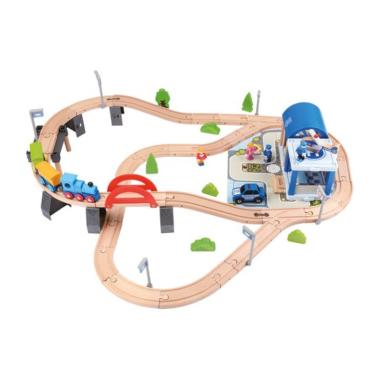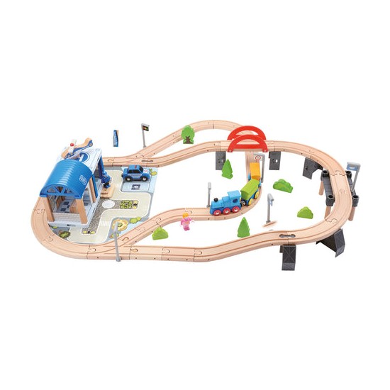E greu pentru un tren sa urce dealul, tragand dupa el doua vagoane, insa distractia incepe de indata ce porneste la vale. Mai mult,veti putea amenaja calea ferata cu figurinele propuse.