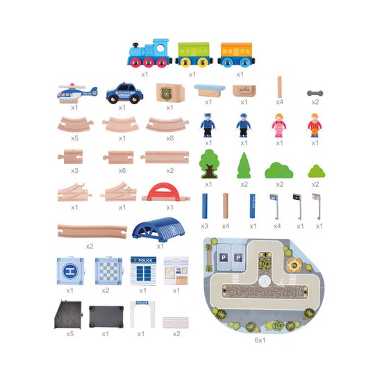 Set Cale ferata-Traseu din lemn cu pod 90, piese