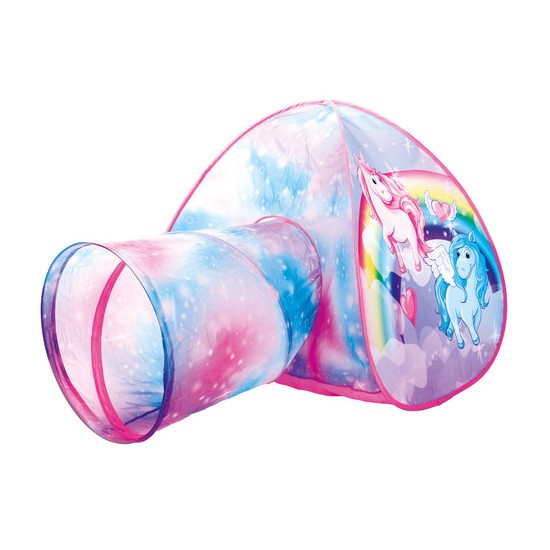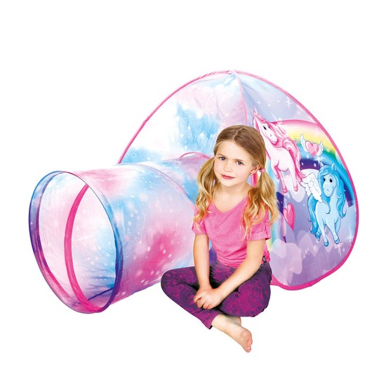 Cortul cu Tunel Unicorn abia asteapta sa fie locul de joaca preferat al copiilor.