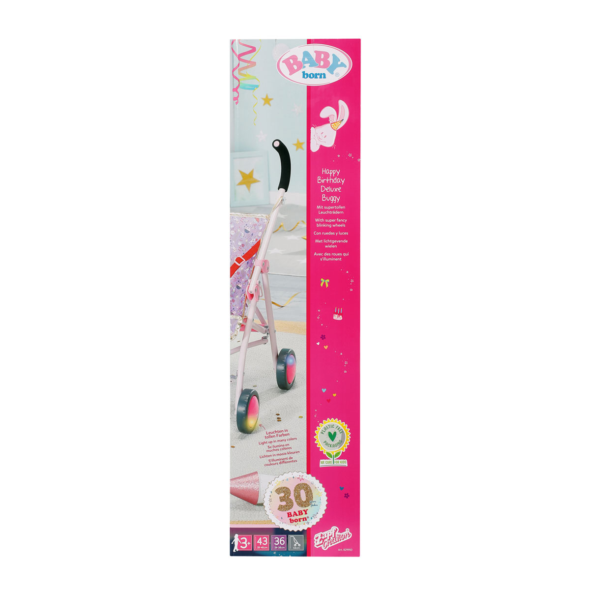 Super caruciorul face parte din colectia emisa de compania Zapf Creation la cea de-a 30-a aniversare a sa si se deosebeste de celelalte jucarii prin rotile care stralucesc. Cu acest carucior ultra-usor, cu un cadru durabil si un design extraordinar, micuta mamica nu va trece neobservata.