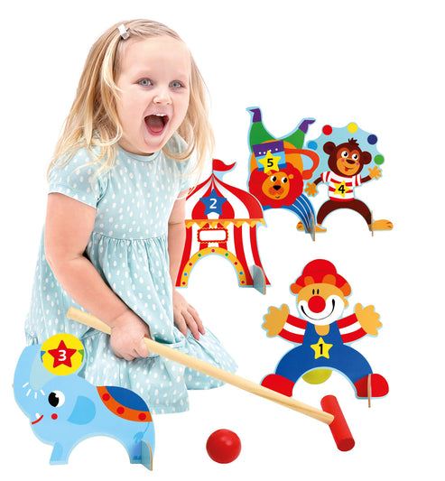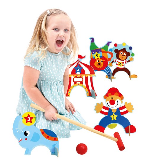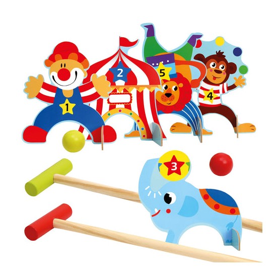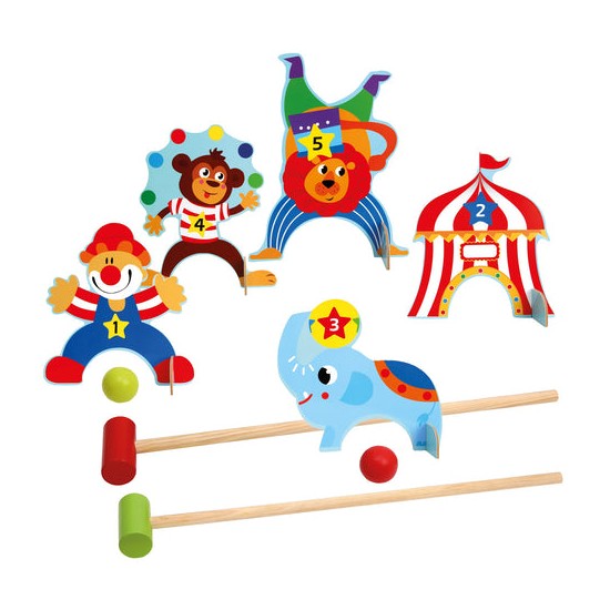 Set de joaca croquet din lemn pentru copii, Circ, 14 piese