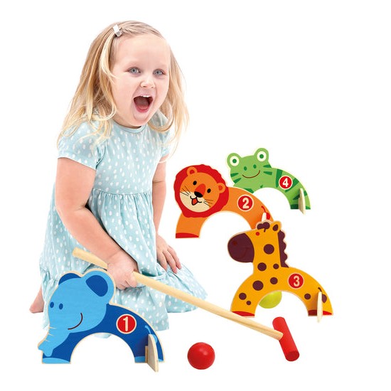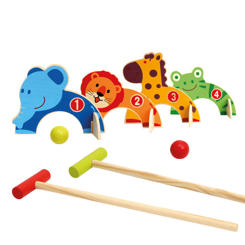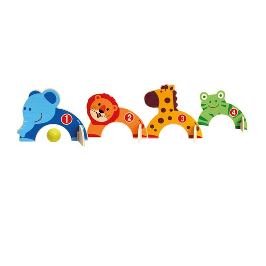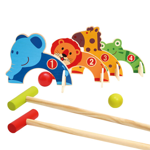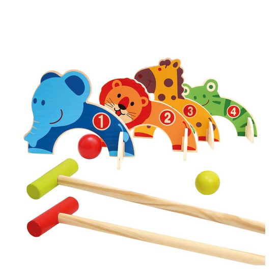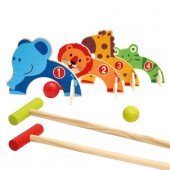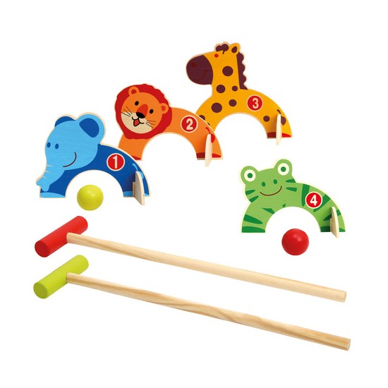 Set de joaca croquet din lemn pentru copii, Zoo, 12 piese