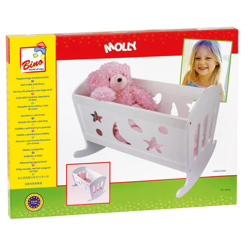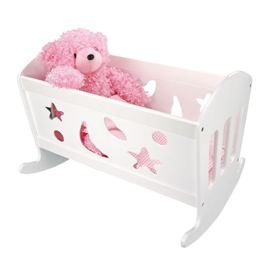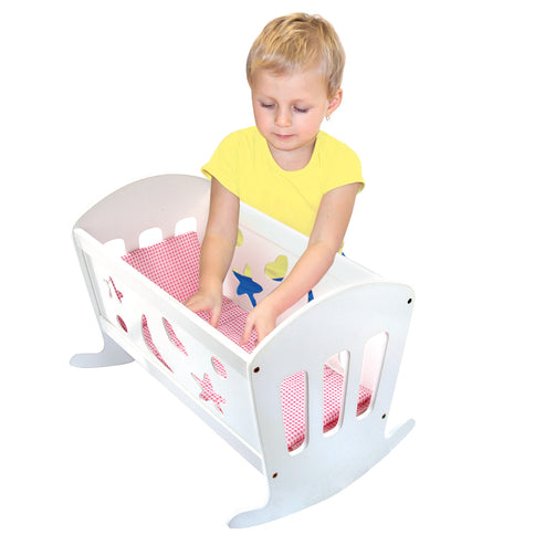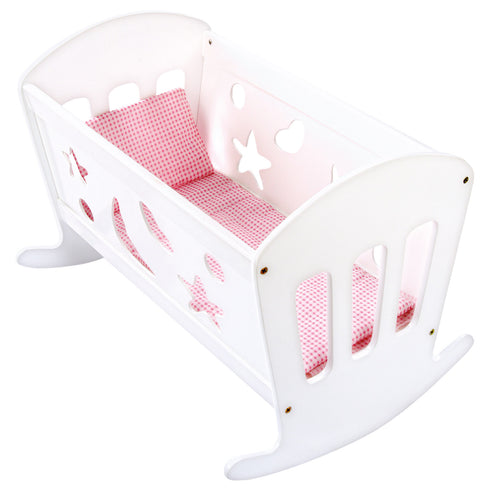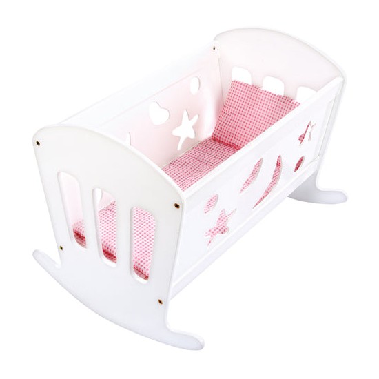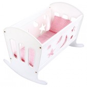 Patuc-Leagan pentru papusi din lemn, alb, cu lenjerie de pat 49x37 cm