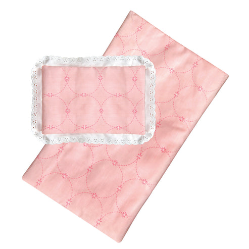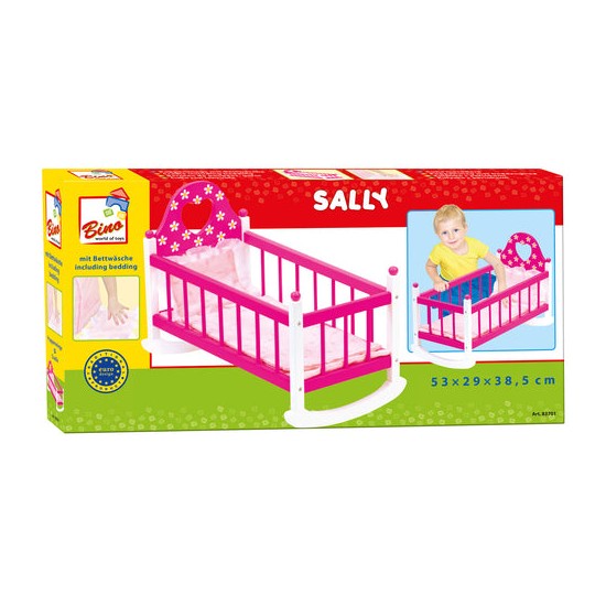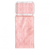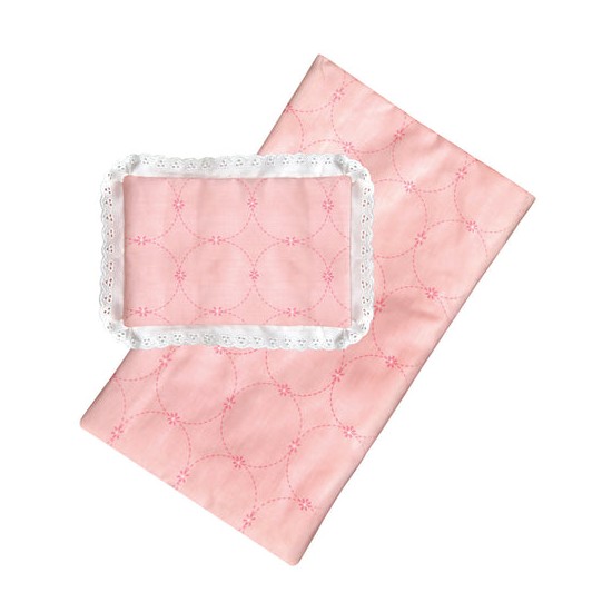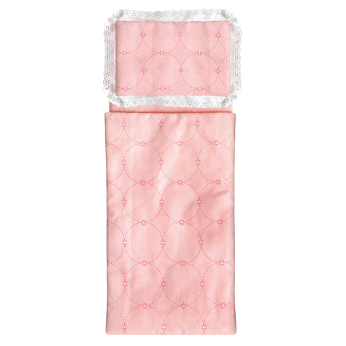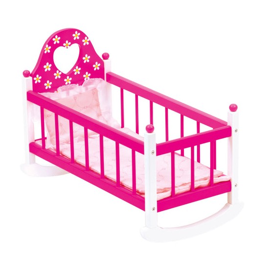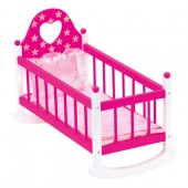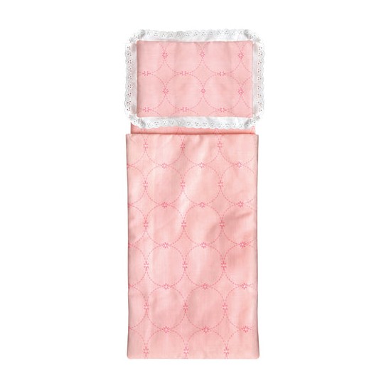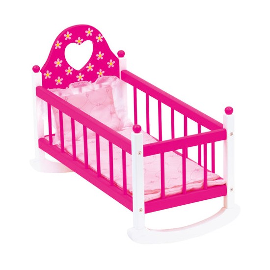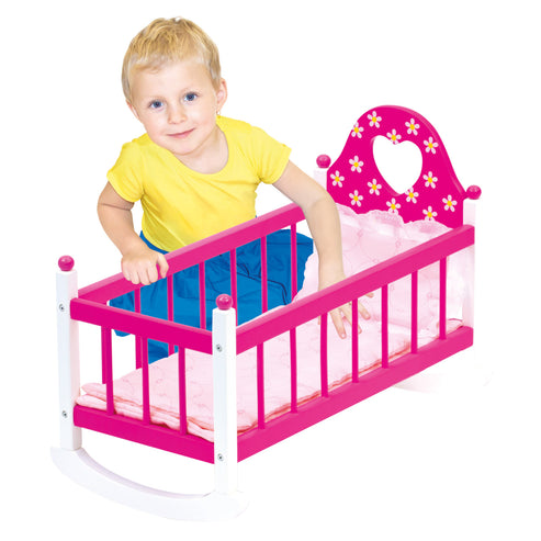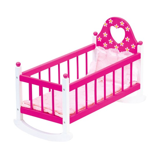 Patuc-Leagan pentru papusi din lemn, roz-alb, cu lenjerie de pat 57 x 29 x 26 cm