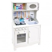 Bucatarie din lemn pentru copii, culoare alba, cu accesorii