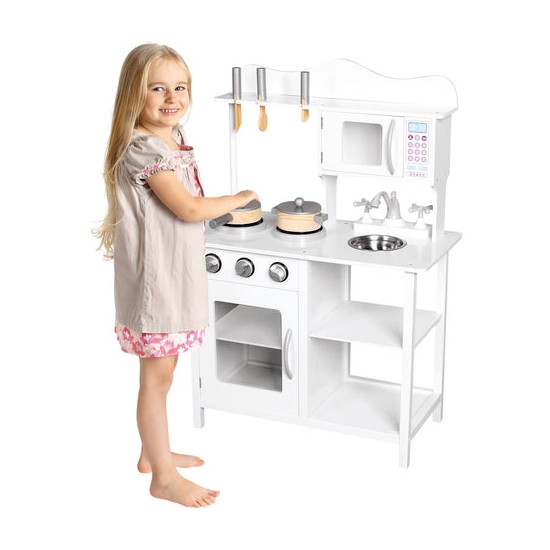 Datorita bucatariei, copiii au posibilitatea de a-si imbunatati abilitatile de gatit. Setul dezvolta coordonarea motrica si vizuala. Bucataria este adaptata inaltimii unui copil. Aceasta este confectionata din lemn, deci poate fi utilizata pentru mai multi ani.