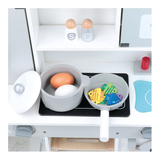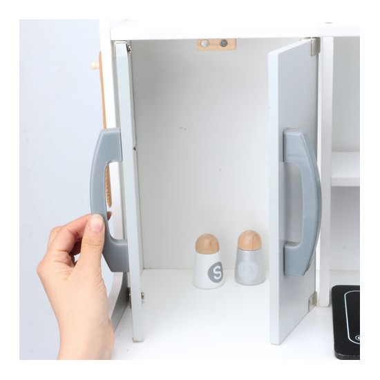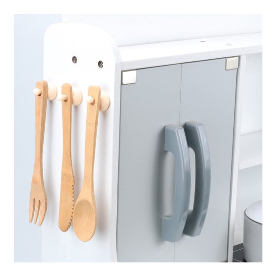 Datorita bucatariei, copiii au posibilitatea de a-si imbunatati abilitatile de gatit. Setul dezvolta coordonarea motrica si vizuala. Bucataria este adaptata inaltimii unui copil. Aceasta este confectionata din lemn, deci poate fi utilizata pentru mai multi ani.