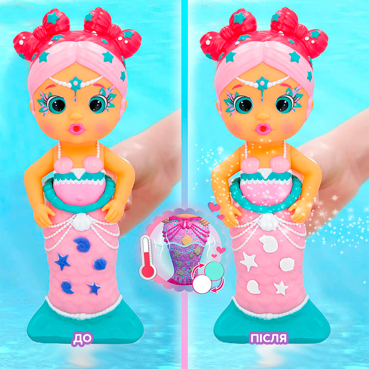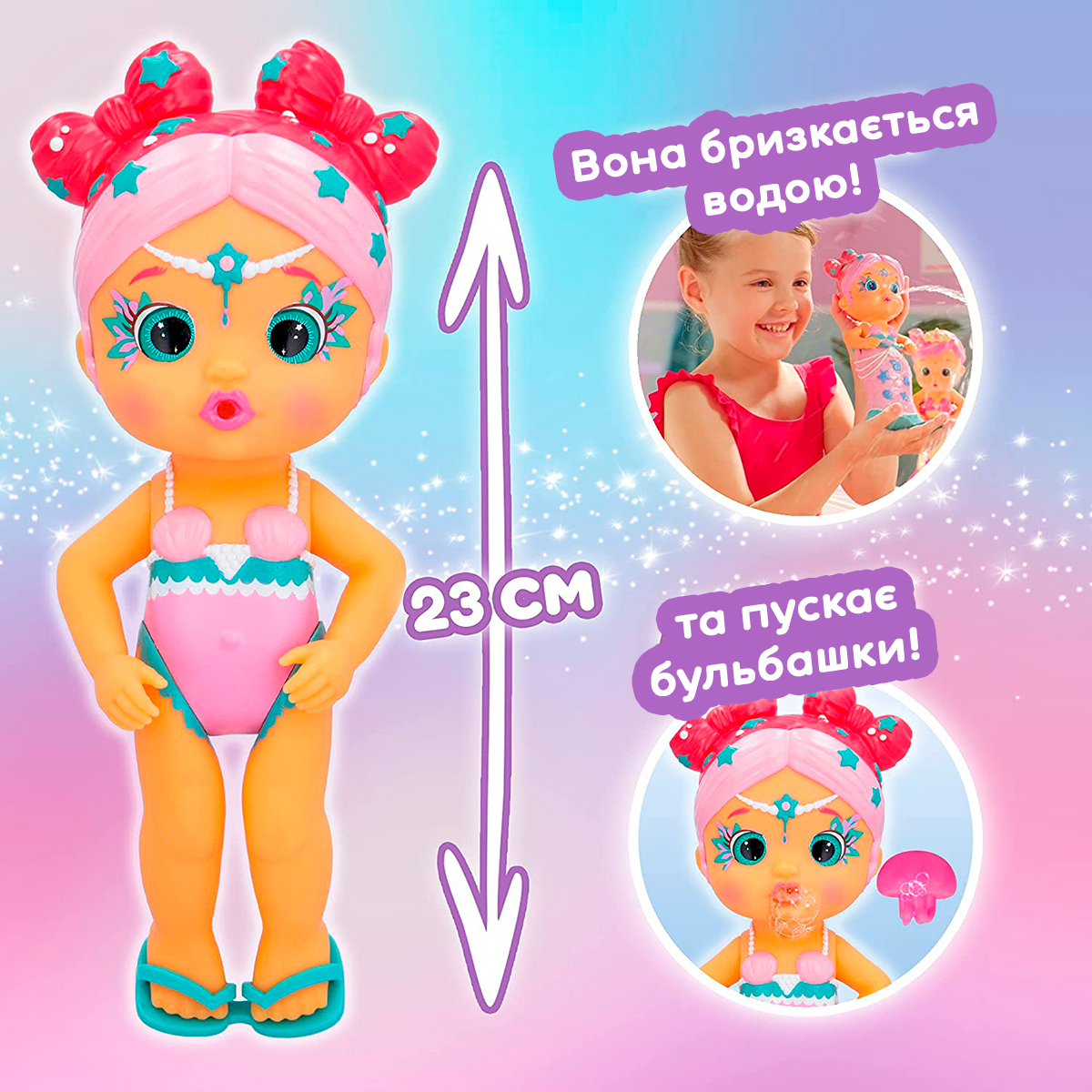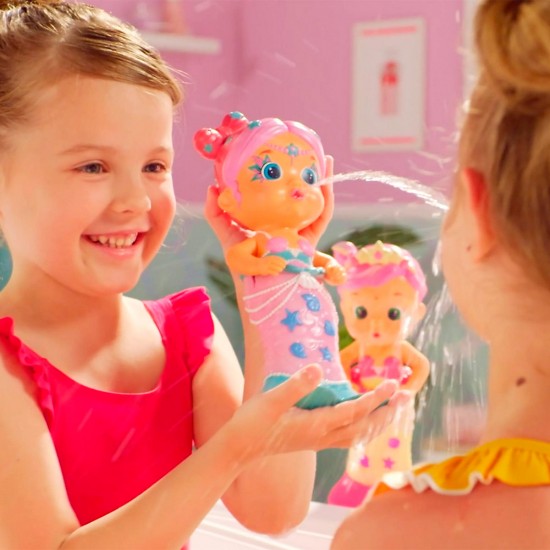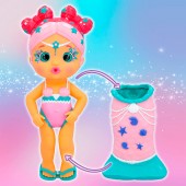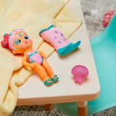 Daca pui papusa in apa calda, unele elemente ale cozii isi vor schimba culoarea! Iar daca ii dai papusei sa bea apa cu sapun, aceasta va stropi sau va sufla cu bule!