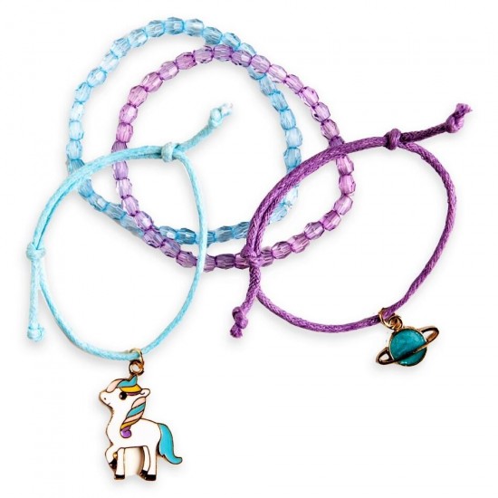 Un set uimitor de la Martinelia care include 4 bratari pentru copii in nunante de roz si bleu cu unicorn si inimioara.