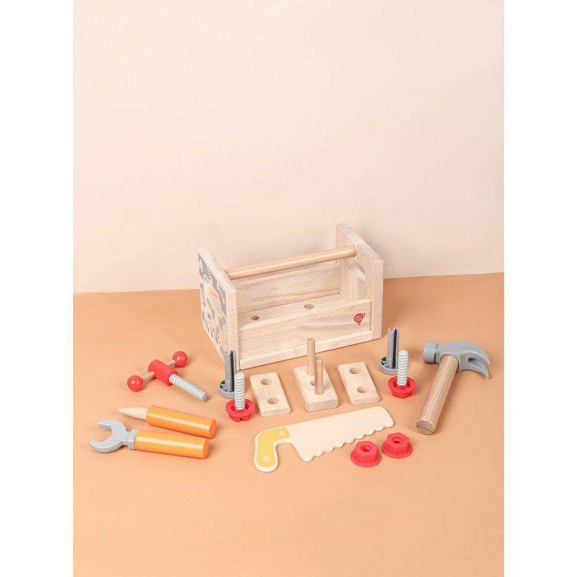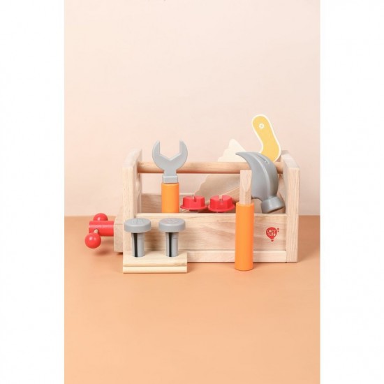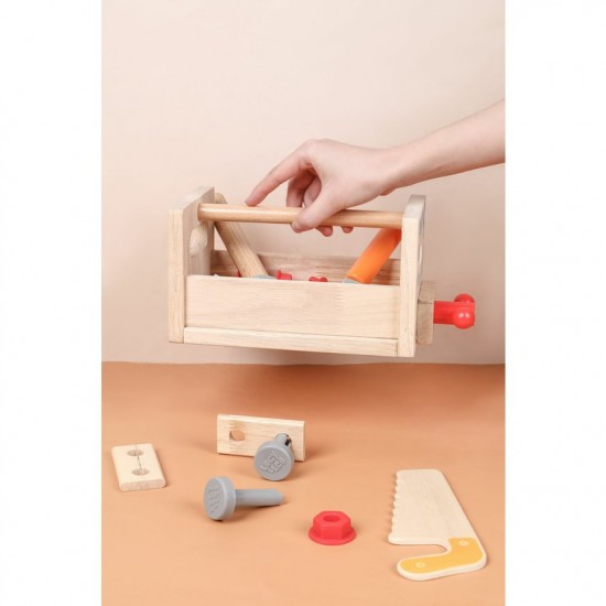 Setul de scule din lemn Carpenter Box este un mod ingenios de a-ti invata copilul mestesugul si indemanarea in lucrul cu instrumente.