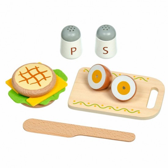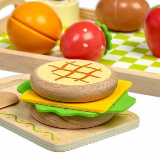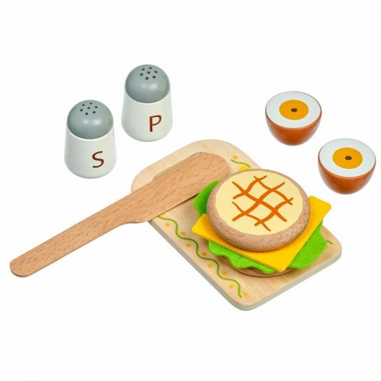 Acesta reprezinta un joc distractiv din piese de lemn pictate realist care imita cu fidelitate un mic dejun bogat si delicios.