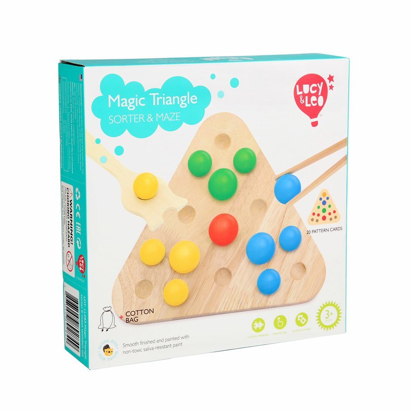9-LL283 Triunghi magic 2 in 1 - joc din lemn cu sabloane Lucy & Leo
