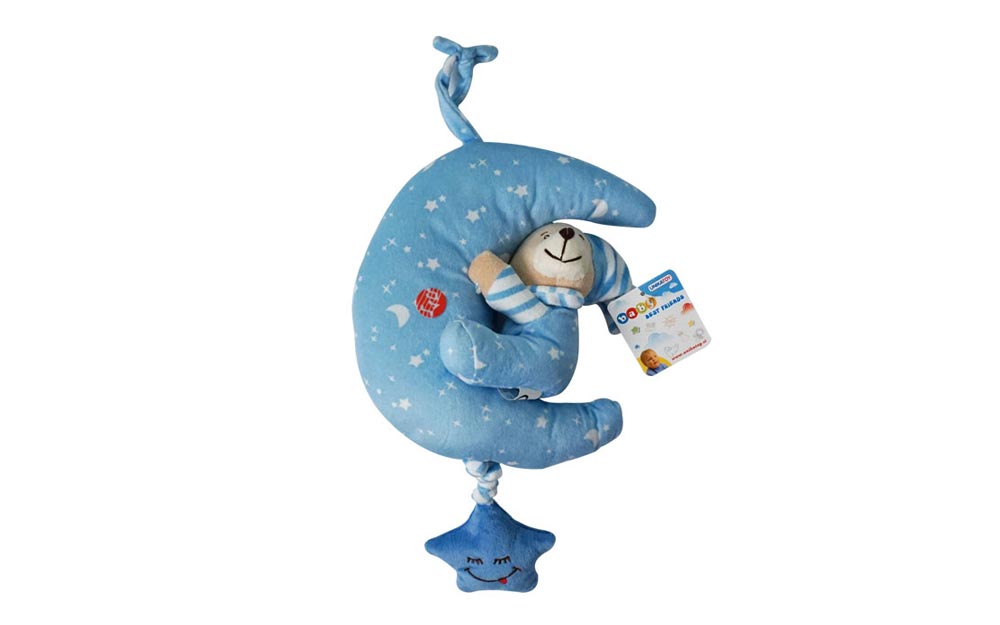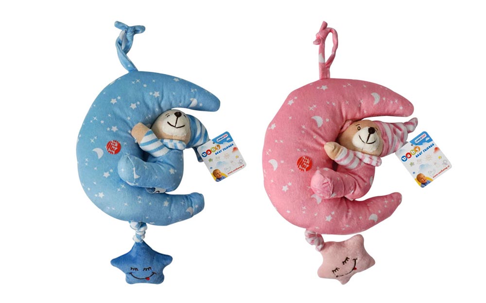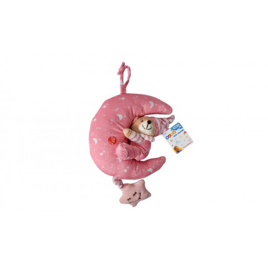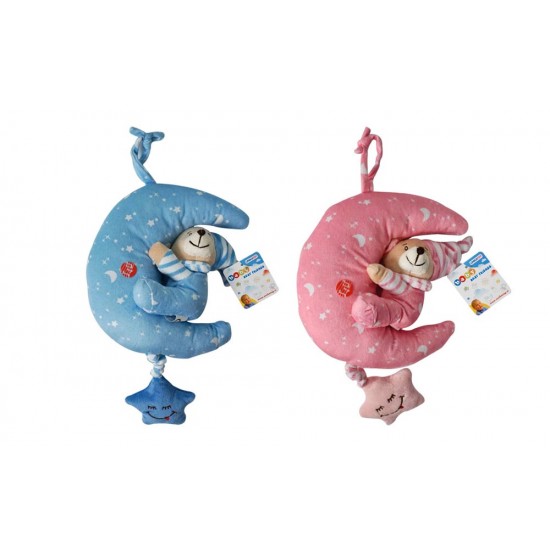 Jucarie muzicala de atarnat Ursulet pe luna 22cm (1 buc.) roz/albastru 23378