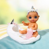Setul include: un scutec cocon, in care este invelita papusa; un biberon; un scutec care isi schimba culoarea la contactul cu apa si o patura moale buna de infasat. Acest set distractiv este perfect a fi oferit in dar micilor printese.