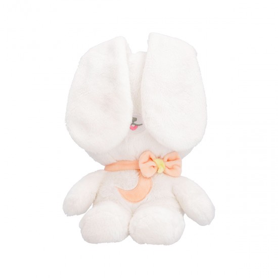 Apasa-l pe burtica pentru ca urechiusele sa se ridica si sa practice jocul mult indragit de copii: Peek a boo. Daca il vei culca in patut langa copilas, urechile iepurasului se vor ridica fara sa fie nevoie sa il apesi pe burtica.
