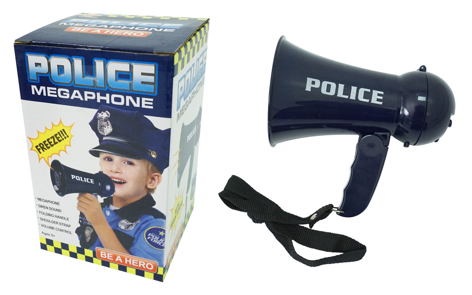 Toyland iti pune la dispozitie megafonul de politie in care poti vorbi, dar care dispune si de un buton pentru a porni sunetul sirenei. Megafonul este dotat si cu buton de reglare a sunetului si are un maner mobil.