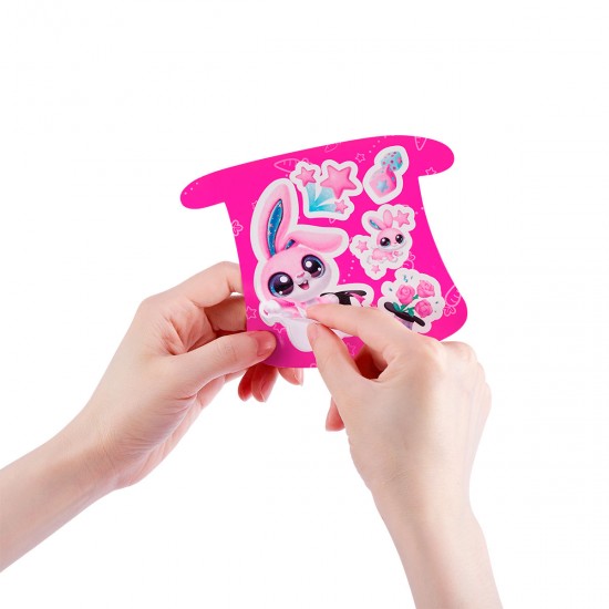 In interiorul palariei se ascunde un compartiment secret - atinge steaua aurie pentru a descoperi mini iepurasi surpriza in diferite culori.
