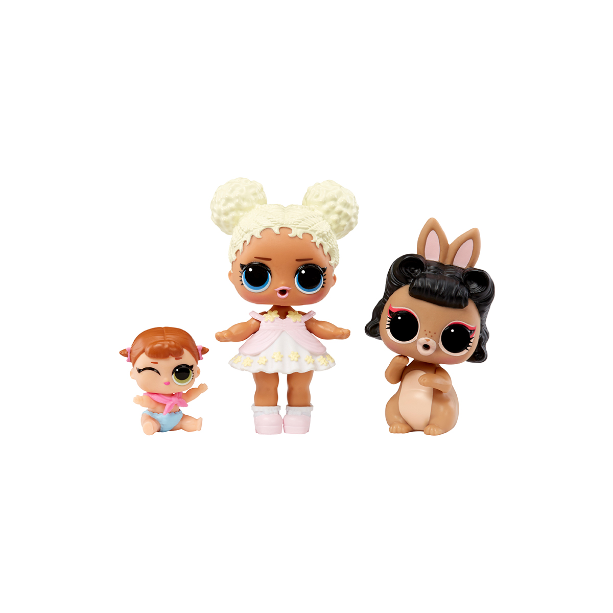 Set 3 figurine L.O.L. Surprise! seria OPP Tot + Pet + Lil Sis - Flower Child + Short Stop Hop + Lil Majorette