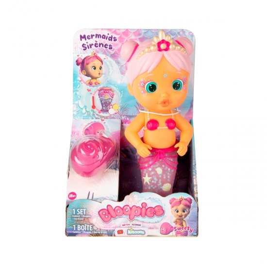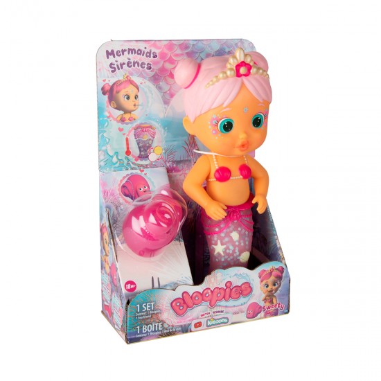 Papusa Sweety 23cm - cu coada de sirena care isi schimba culoarea si scuipa apa Bloopies