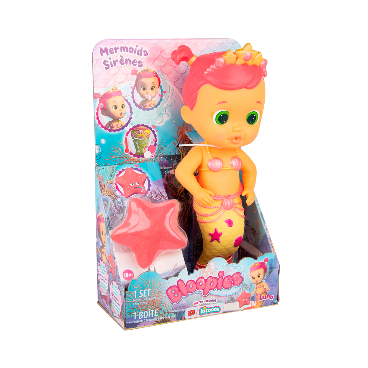 Papusa Luna 23cm - cu coada de sirena care isi schimba culoarea si scuipa apa Bloopies