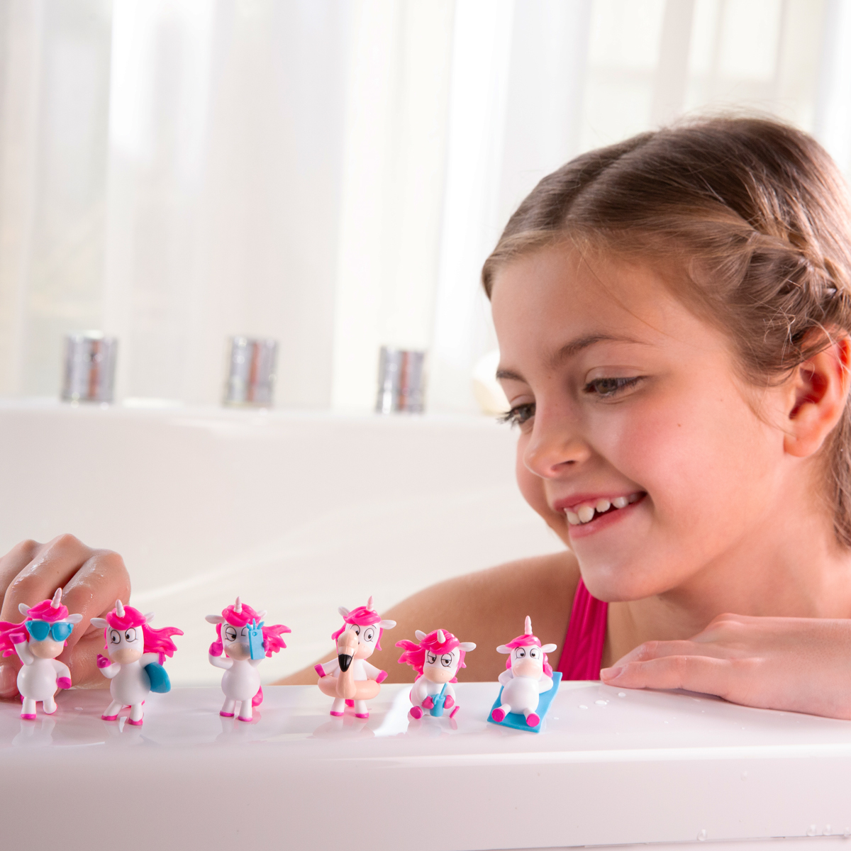 Faceti cunostinta cu Unicornii! Transforma ora baii intr-un joc distractiv si colorat cu spuma colorata si moale, care contine o jucarie surpriza.