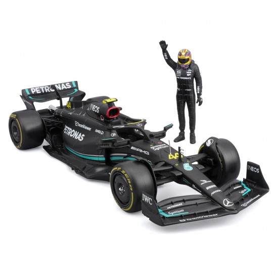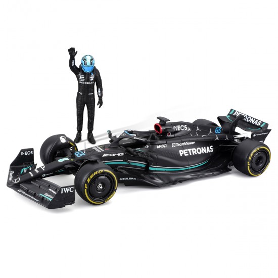 Macheta auto Mercedes-AMG F1 W14 E Performance (1:24) cu figurina pilot, Bburago (2 modele)