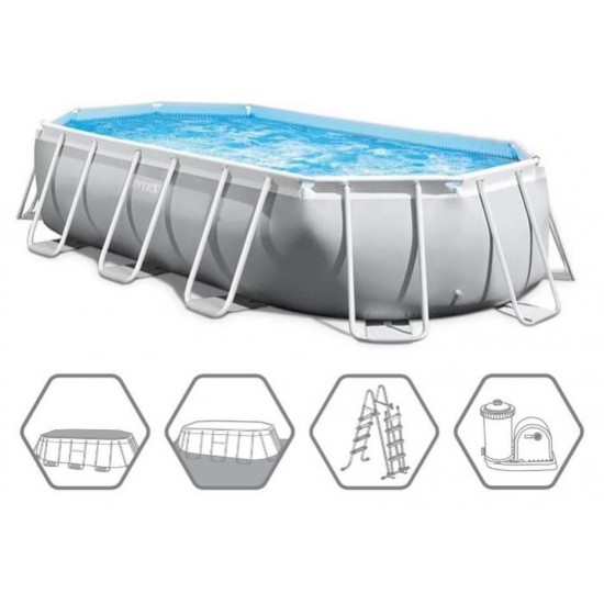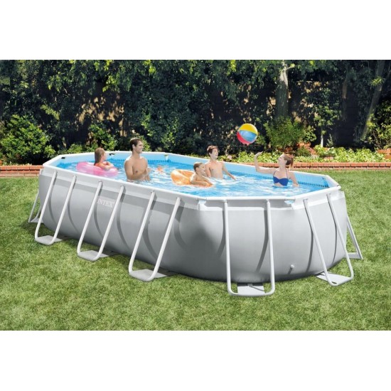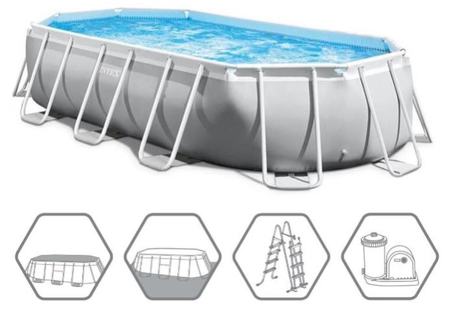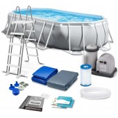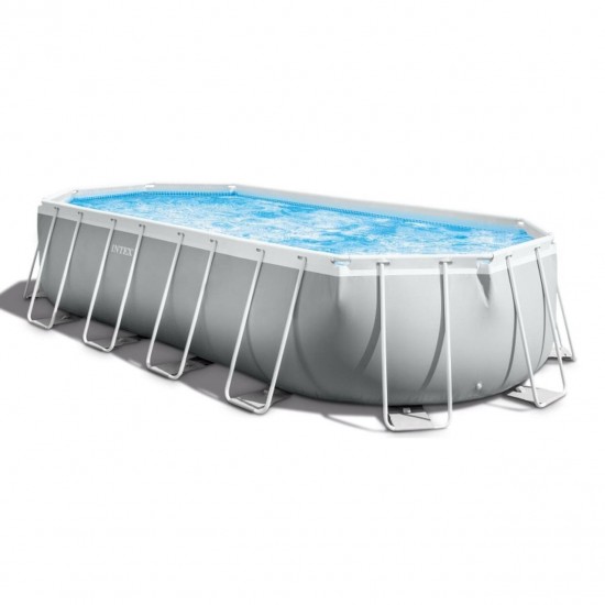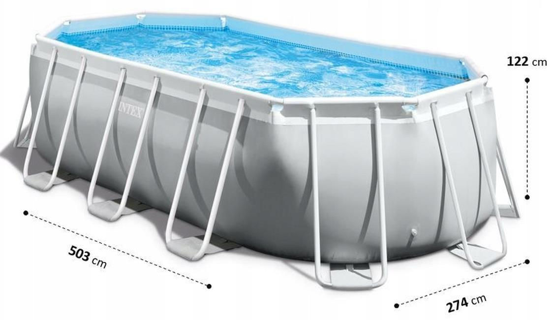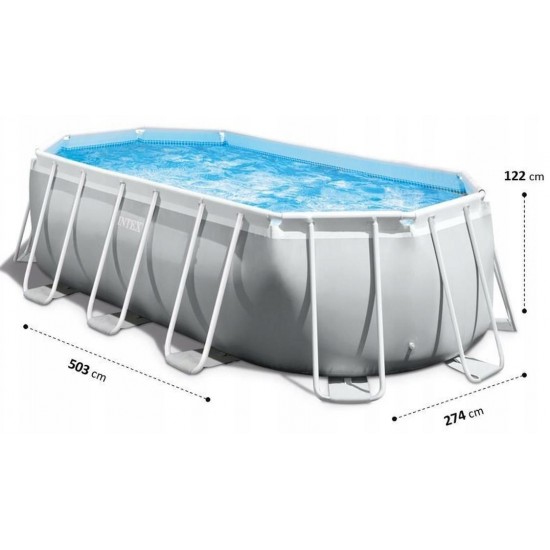 Piscina Ovala Intex Prism Frame, Cadru Metalic Galvanizat, 503 x 274 x 122 cm, 13365 L, Set Complet: Pompa, Scara, Prelata si Covoras