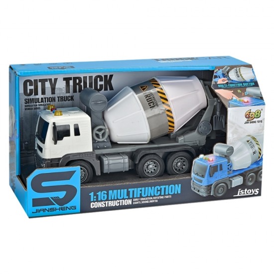 Camion Betoniera alb-gri cu frictiune, sunete si lumini, 1:16, jstoys, ZJA278613