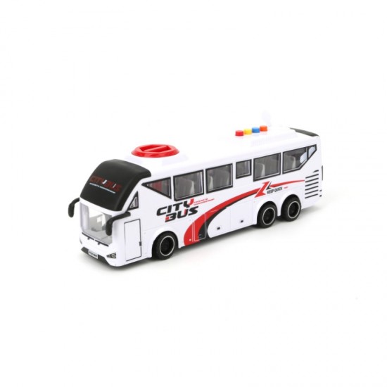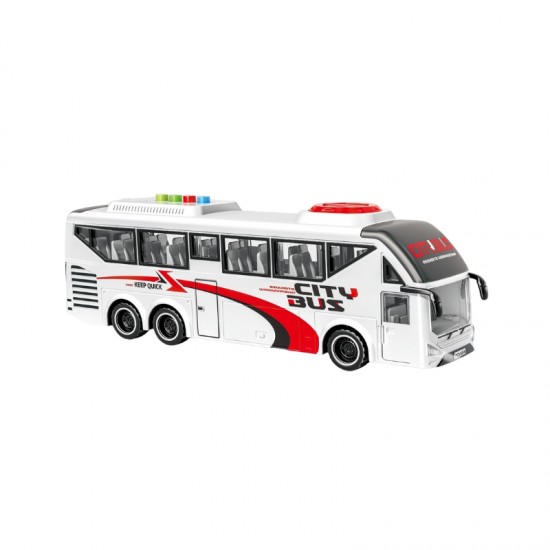 Autobuz alb cu frictiune, sunete si lumini, 1:16, JSTOYS, ZJA352333