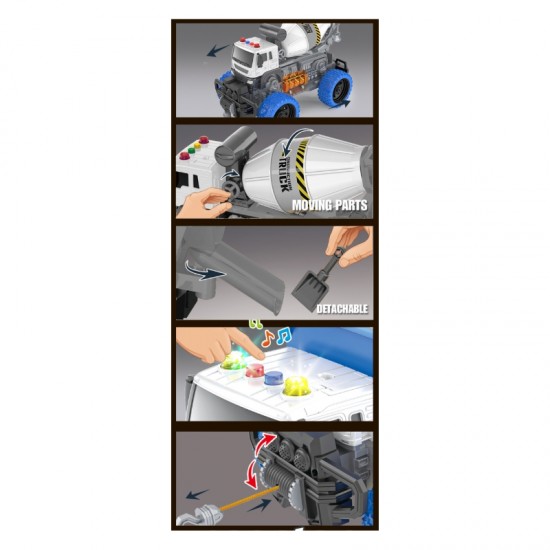 Camion betoniera cu roti mari, inertie, lumini si sunete, 1:16, JSTOYS, ZJA327139