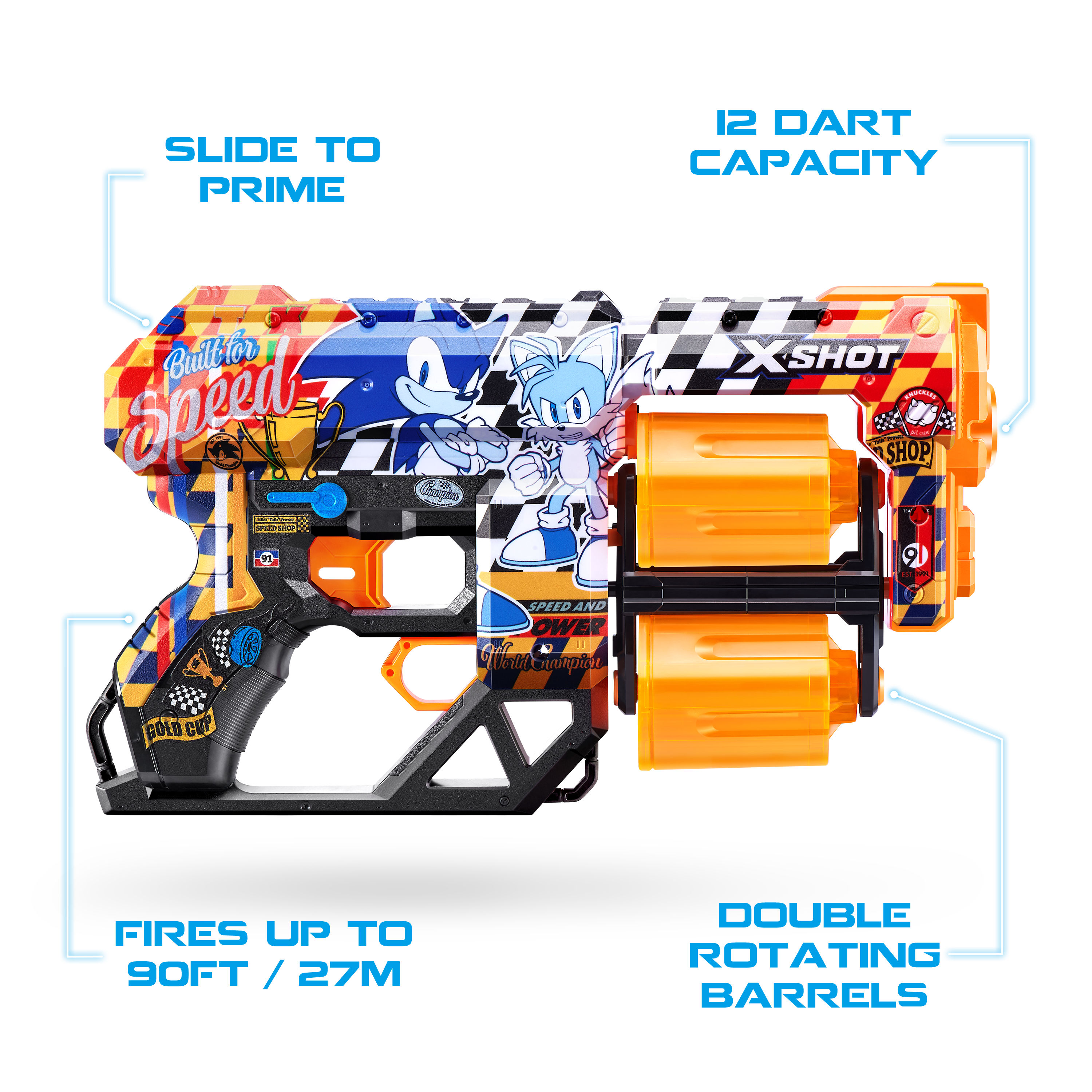 Alege Blasterul X-Shot Skins Dread,Sonic, Super Speed si alatura-te luptei! Acest blaster nu trebuie sa lipseasca din colectia ta. Niciodata nu veti ramane fara munitie. X-Shot Skins Dread are o capacitate de 12 sageti cu doua butoaie rotative. Cand nu va raman sageti intr-un butoi, treceti la celalalt pentru a continua lupta. De asemenea, sunt incluse 12 sageti de spuma.