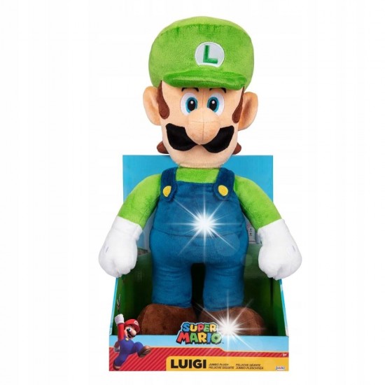 Jucarie de plus gigant Nintendo Luigi Jumbo, inaltime 50 cm, material moale, 3 ani+