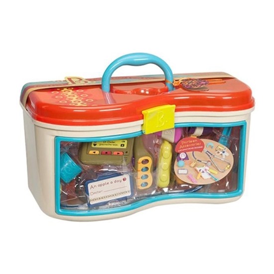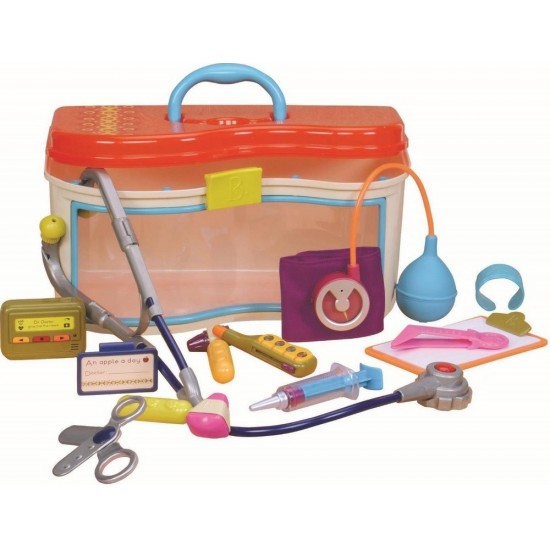 Setul include o gama variata de instrumente de doctor, cum ar fi stetoscop, termometru, seringa, pansamente, bisturiu si altele, care le permit copiilor sa se joace de-a doctorul si sa isi foloseasca imaginatia pentru a trata "pacientii", toate fiind aranjate intr-o valiza super comoda.