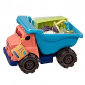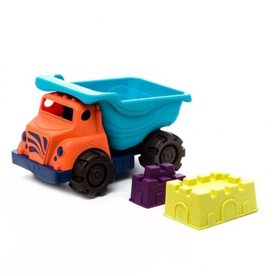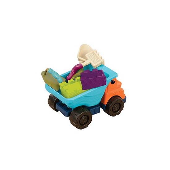 Setul include o autobasculanta cu un compartiment basculant care poate fi ridicat si coborat, o lopatica, o sita si forme pentru nisip, toate necesare pentru construirea celor mai frumoase castele de nisip si alte structuri creative.