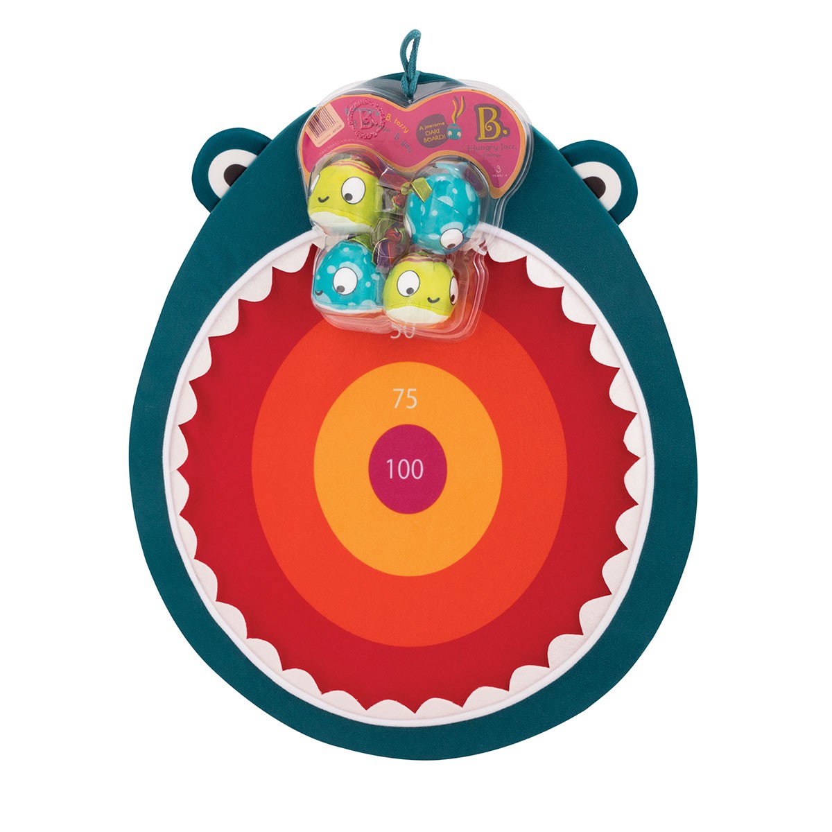 Hraneste rechinul flamand cu ajutorul mingiutelor sub forma de peste! Acest joc colorat si distractiv va fi pe placul copiilor si prietenilor. Tinteste si arunca mingea in gura rechinului. Usor de transportat oriunde, in curte, la plaja.