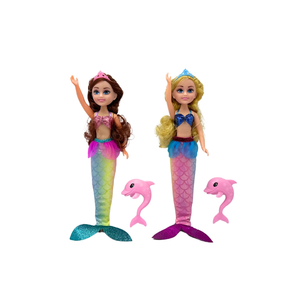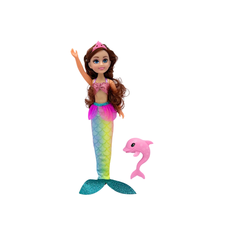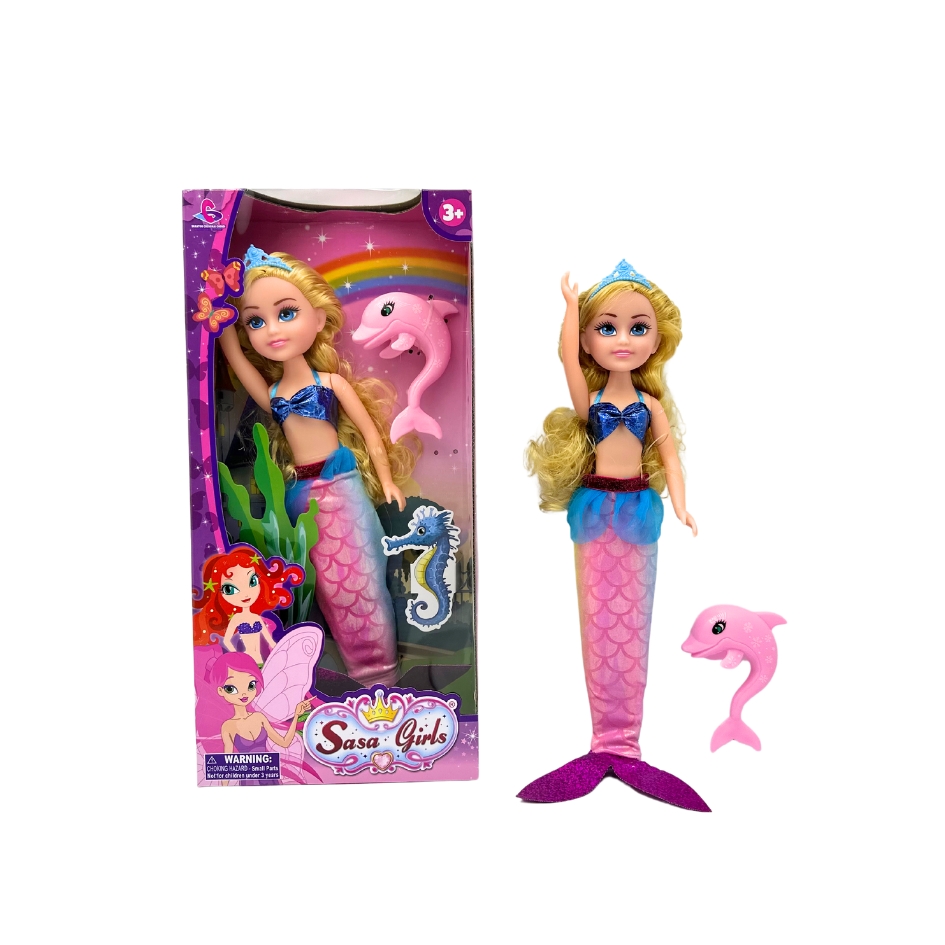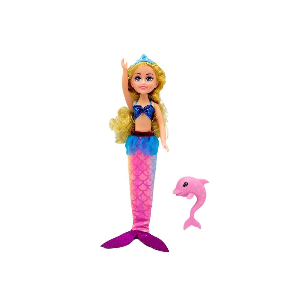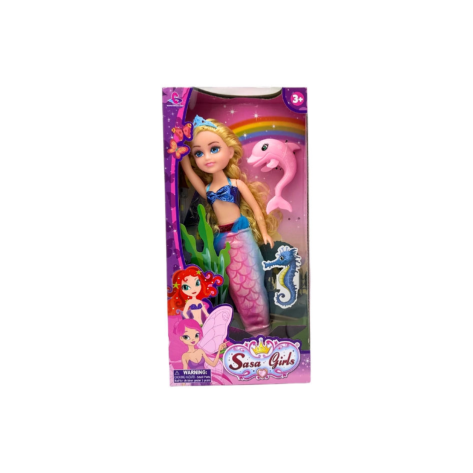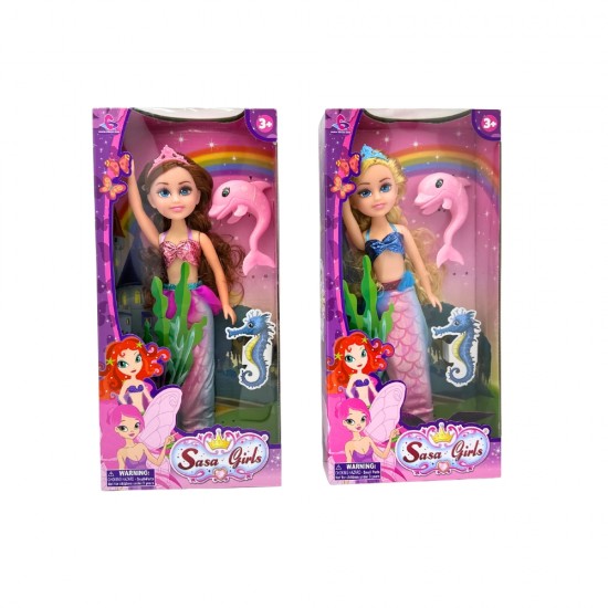 Aceasta papusica este un cadou excelent pentru fetitele care iubesc sa creeze lumi fantastice si sa joace roluri diverse. Aceasta papusa sirena este disponibila in doua variante, cu par blond si cu par saten, lung si matasos care poate fi pieptanat si coafat, si accesorii atractive.