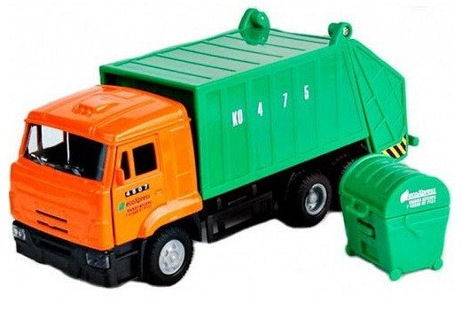 Masina - Kamaz Autogunoiera CT12-457-4WB este fabricata din plastic si metal. Acesta arata foarte realist. Usile cabinei, precum si cele din spate se deschid. Exista efecte luminoase si sonore, precum si mecanism inertial. In set cu masina exista si un recipient pentru gunoi.