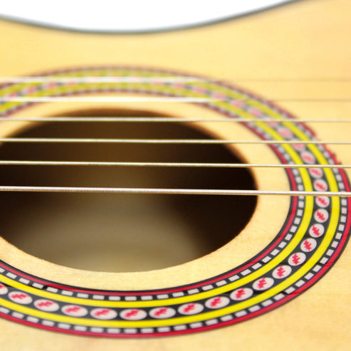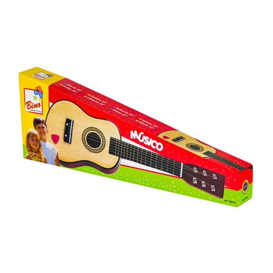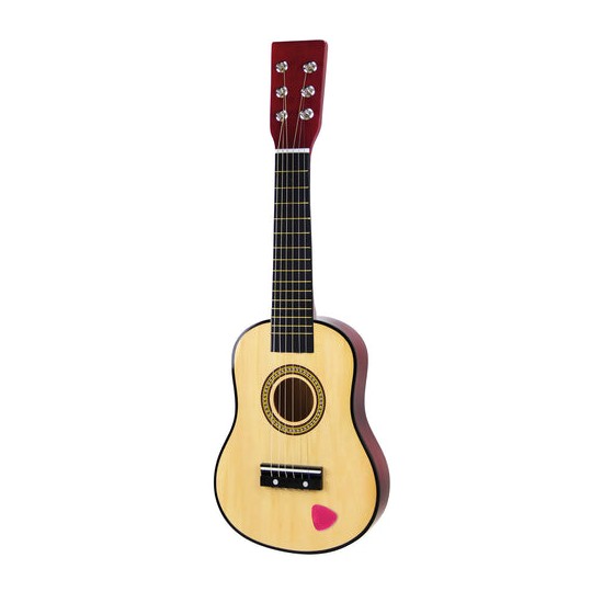 -confectionata din lemn de calitate si vopsita cu vopsele non-toxice, aceasta chitara de jucarie ii va introduce pe copii in lumea fascinanta a sunetelor si le va starni interesul pentru muzica.