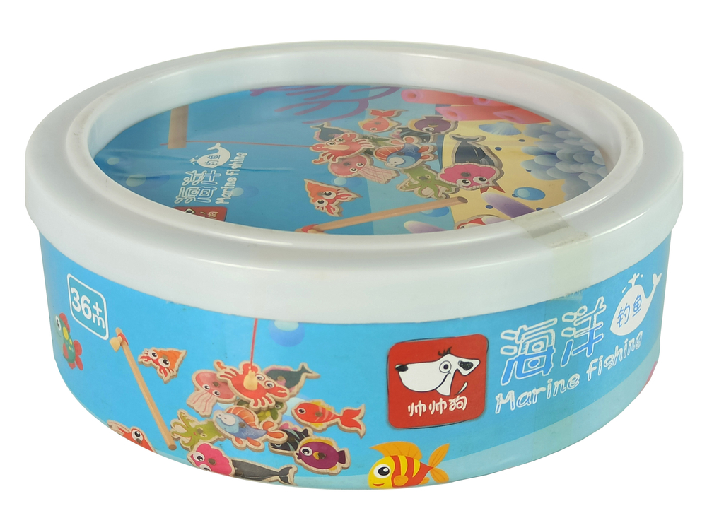 Joc din lemn, Pescuitul magnetic, in cutie rotunda