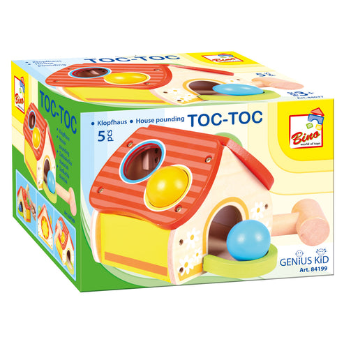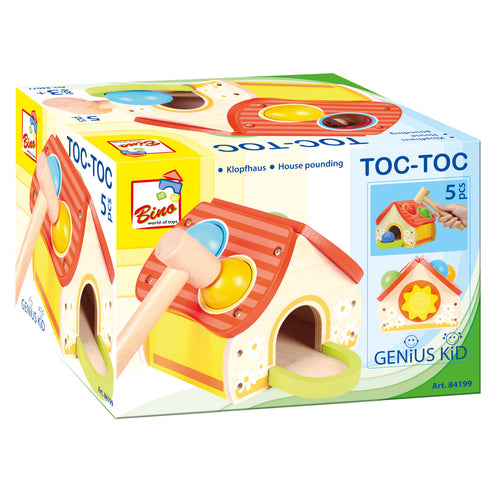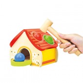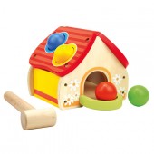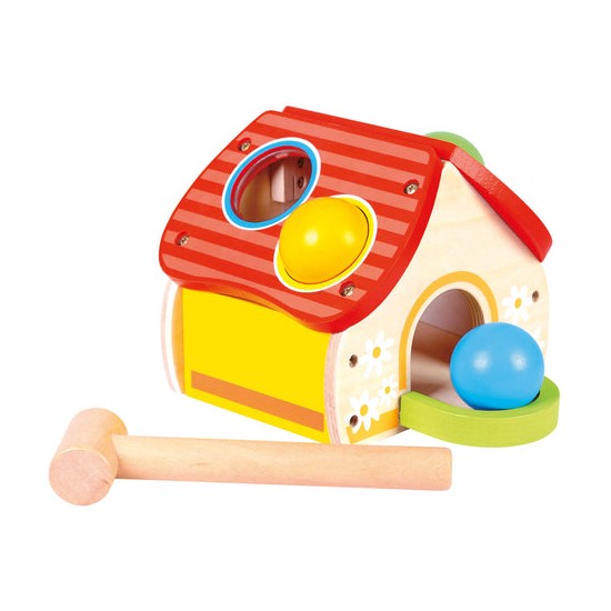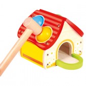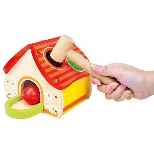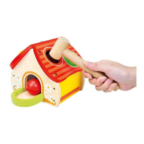 Jucarie din lemn Casuta cu ciocan, 5 piese, 14x13x18,2 cm