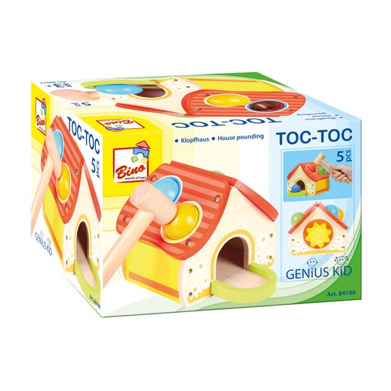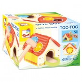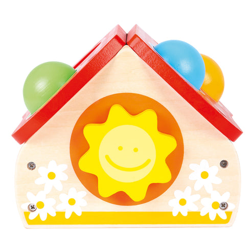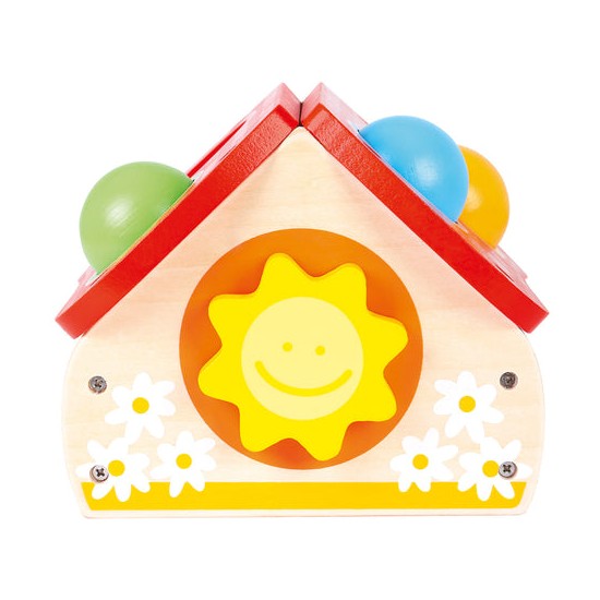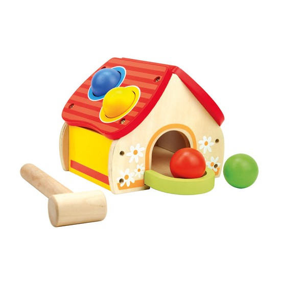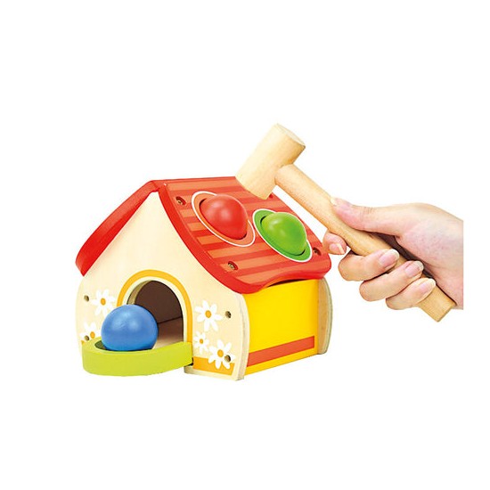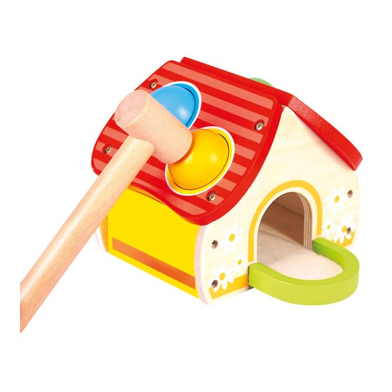 Loveste mingile si vezi unde se duc cu fantastica noastra jucarie de lemn! Bang, bang, loveste mingile mereu si din nou. Este foarte distractiv sa privesti cum dispar prin acoperis si ies pe usa. Copiilor le place sa puna bilele in diferite gauri si sa vada ca toate ies din nou. Jucaria ajuta la exersarea abilitatilor motorii fine, coordonarii, gandirii logice si abilitatilor de observare.