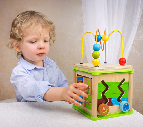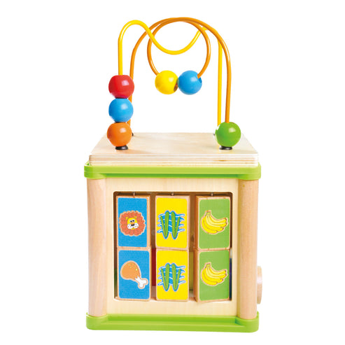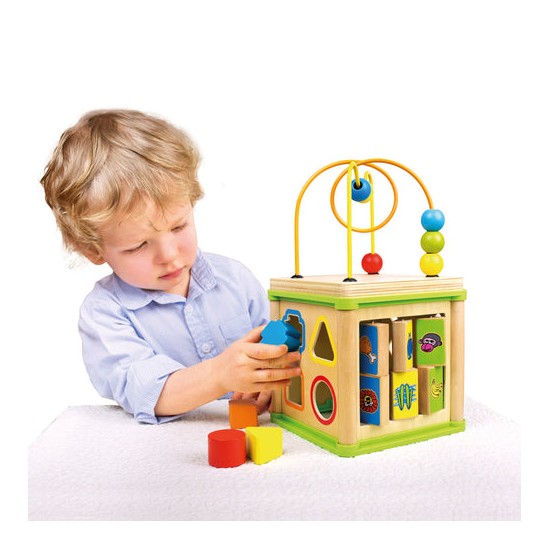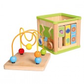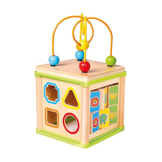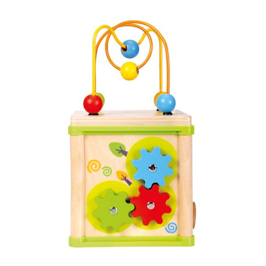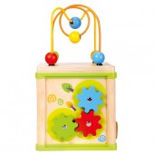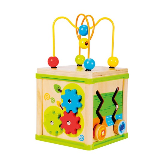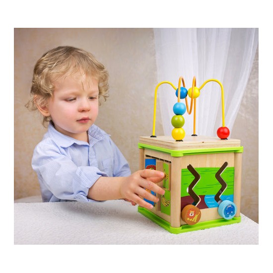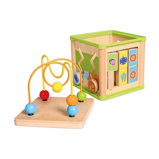 Cubul educativ este o jucarie motrica datorita partii superioare care reprezinta un traseu complicat pe care se misca bilele, este o jucarie educativa pentru ca exista laturi cu labirint, numaratoare, ceas, acestea ajutand la invatarea notiunilor esentiale pentru lumea din jur.