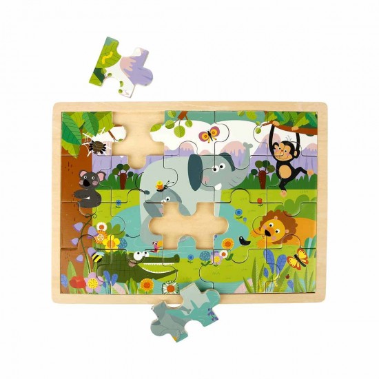 Puzzle din lemn Animale Salbatice 20 el. 30 x 22,5 cm Woody