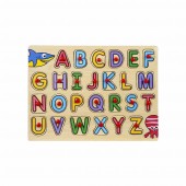 Puzzle din lemn cu buton Litere Alfabet englez 26 el. 29,5 x 1 x 22 cm Woody